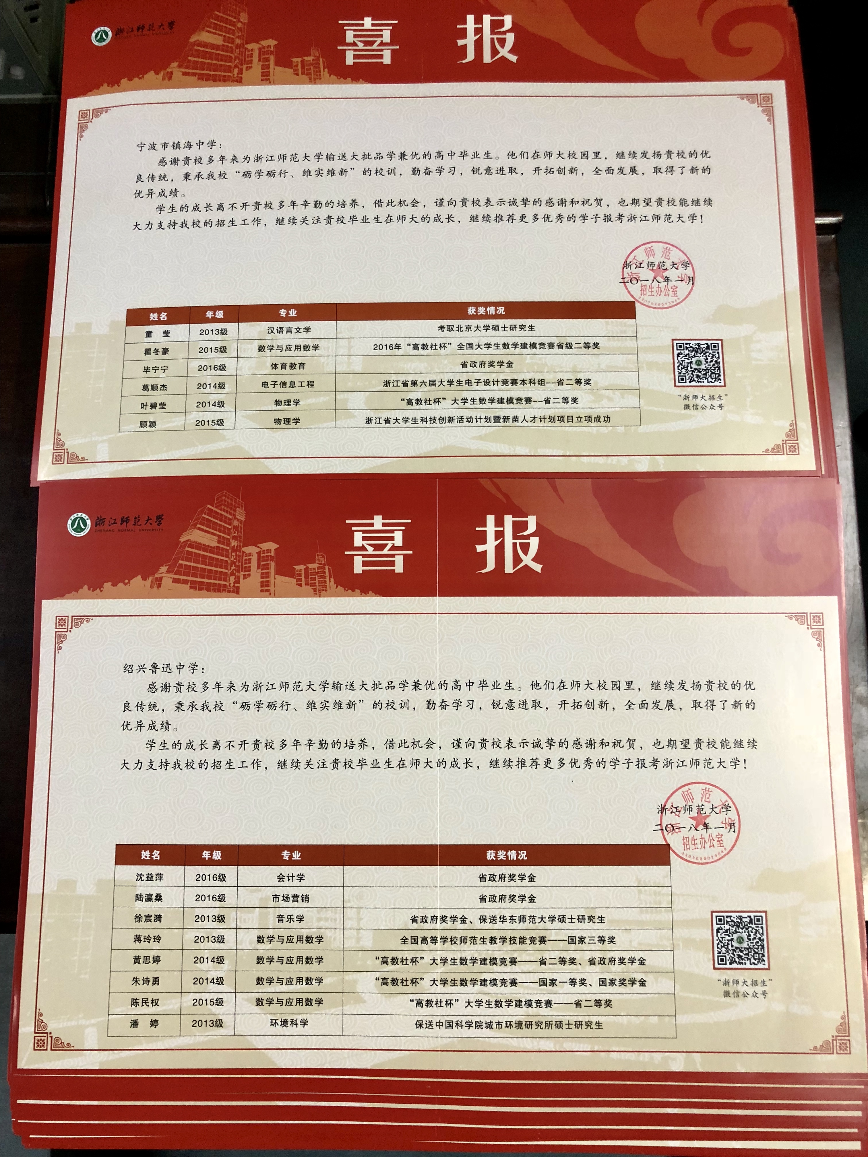 至此,我校2018年寒假招生宣传工作全面启动。据悉,寒假期间学校将安排500余名学子带着学校的海报、名片、特制笔、报考指南、PPT等招生宣传材料奔赴省内外200余所中学开展第八届“感恩母校行”招生宣传活动;校招生办和各学院工作人员将奔赴全省各地市开展2018年“三位一体”招生宣传与咨询;650张优秀学子喜报也将在近日陆续寄往全国595所中学。