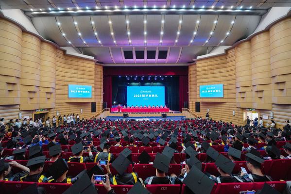 副校长、校学位委员会副主任林一钢宣读2023届学生准予毕业和授予学位的决定,7999名毕业生的名单在现场屏幕滚动播放,7999名毕业生在这个六月荣耀毕业。