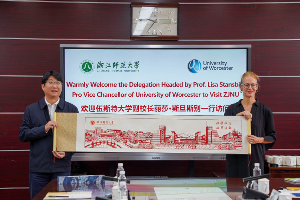 会见英国伍斯特大学副校长丽莎·斯旦斯别率一行现场。浙师大融媒体中心 卢奕扬 摄