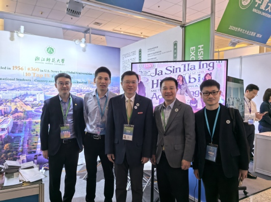大会期间,邱利民代表学校,与教育部语合中心党委书记、主任郁云峰、万宝非洲农业发展有限公司董事长丁松签署三方协议,联合设立“莫桑比克智慧农业国际中文教师奖学金”。项目旨在为非洲农业现代化培养既懂中文、又掌握先进农业技术的本土化人才,将进一步拓展我校国际中文教育工作的外延。此外,邱利民还前往HSK国际教育交流展浙师大展台,看望浙师大参展代表。