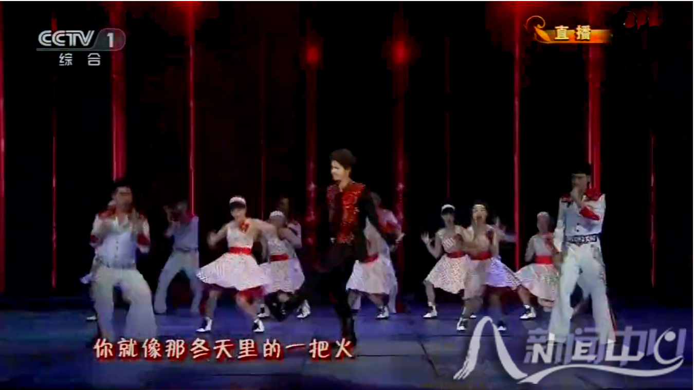 图为陈瑜(右一)参加央视春晚直播演出(网络视频资料截图)