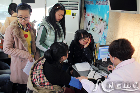 在杏园食堂西侧,外语学院学生会举办了爱心献血活动,现场有超过30名同学报名献血。第一次献血的唐真坦言:“因为血压低,以前献血没有成功。这次活动正好赶上学雷锋日,这样献爱心觉得更有意义了!”