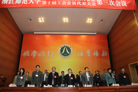 4月10日,校第八届教代会暨第十届工代会第三次会议在行政中心报告厅隆重举行。会议表决通过了《浙江师范大学绩效工资实施办法(草案)》、《浙江师范大学第二轮岗位设置与聘任实施方案(草案)》。