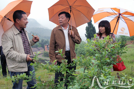 4月18日,在校务委员会副主任、校帮扶工作领导小组组长黄华童率领下,我校生化学院郭卫东教授冒雨来到武义县大田乡的蓝莓基地,为种植户送上科学种植知识和技术。