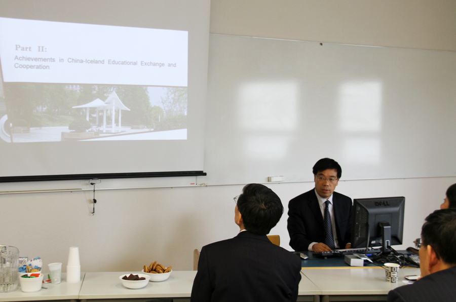 在冰岛大学,吴锋民出席“中冰大学校长论坛”,并代表中国高校作主旨演讲。中国驻冰岛大使马继生、冰岛大学相关官员出席并致辞。吴锋民在主旨演讲中介绍了中国高等教育的基本情况,并就中冰两国教育领域的合作交流进行了展望。会上,双方还就学术研究领域各自的特长和优势、高等教育和学术机构的交流沟通、人才培养和科研成果转化等方面合作等问题进行了交流和沟通。