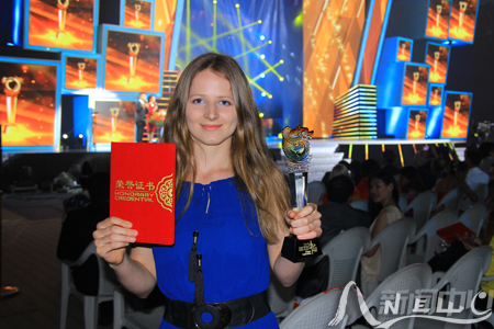 此外,在颁奖晚会上,我校乌克兰留学生娜塔莎作为优秀选手被聘为青岛开发区的宣传大使,并授予宣传大使称号。