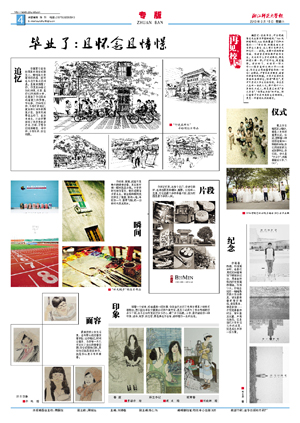 校新闻中心还专门制作了毕业视频《记得》表达广大毕业生的离校情怀,在6月15日出版的校报上推出毕业专版,三版邀请考研、考公、就业、创业的学生代表畅谈他们的大学故事与未来理想,表达共同的心声:与梦想随行,青春不散场;普通同学的师大情怀,也在“学在师大”“吃在师大”“行在师大”的离人絮语里有淋漓尽致的表达;四版图片专版《毕业了:且怀念且憧憬》刊载了毕业生们的毕业绘画、摄影以及明信片作品,以“追忆”“仪式”“瞬间”等7个关键词连缀起毕业生们的情愫。