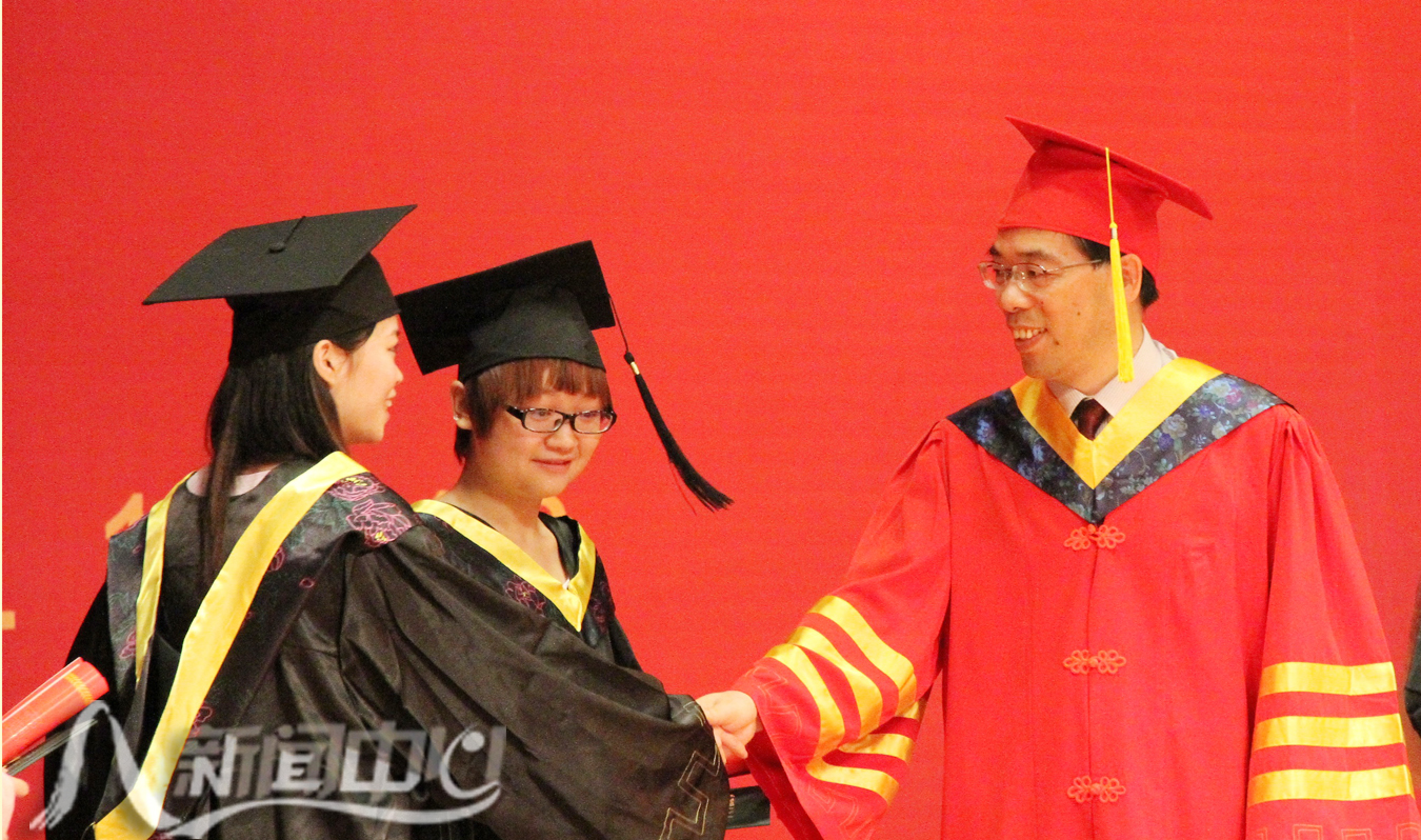 初阳学院的蔡碧倩说,擎着校长寄语和学位证书,站在校长身边拍照时,由衷地感觉这是一个大日子,一个全新的开始。“这是第一次握校长的手,听到校长问我们是哪里人,什么专业,还祝福我们‘前程似锦’,非常开心和感动,还有同学给了校长大大的拥抱。”文传学院的沈丽华表示,与校长合影是一份荣誉,这也让毕业典礼更加具有仪式感。