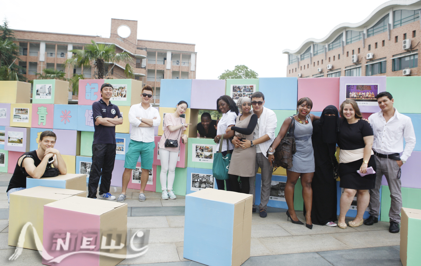 典礼后,毕业生还纷纷在校团委、学生会创意设计的毕业纪念墙前驻足留影。