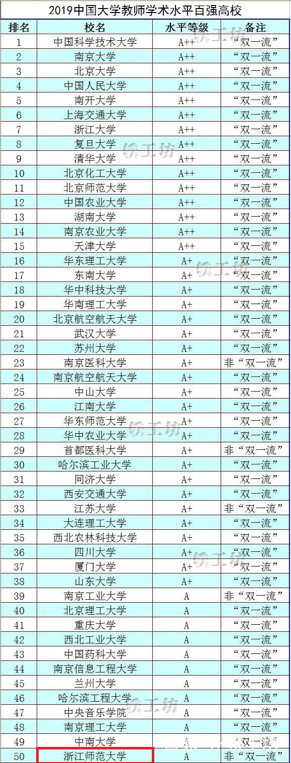 2019中国大学教师学术水平百强高校榜单中有19所非“双一流”建设高校,数量占了总数的约两成。而非“双一流”高校排位超过世界一流大学建设高校的情况也并非个别:首都医科大学位次超过哈尔滨工业大学、同济大学、西安交通大学等;江苏大学位次超过大连理工大学、四川大学、厦门大学等;浙江师范大学位次超过吉林大学等。