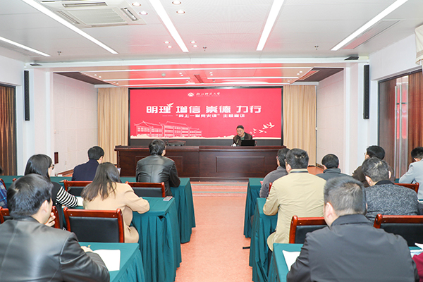 3月22日下午,浙师大党史学习教育“同上一堂党史课”示范培训及工作部署会在行政中心多功能会议室举行,浙师大党委副书记朱坚主持会议并对本次主题宣讲工作进行部署。