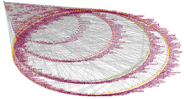 语义韵是语料库语言学领域中的一个重要概念,以往对语义韵的研究多从搭配的意义、关键词的内涵意义或词汇选择的语用功能等角度对其进行定义,忽略了语义韵中各要素的层次结构、语法联系以及相应的语义弥散方式。语言是一个要素系统,词汇在该系统中通过某种特定关系相互联系形成语义弥散。因此,刘建鹏教授及其研究生张璐瑶、白晓慧采用了依存句法网络的方法来研究语义韵,通过语义韵内词间的依存句法关系构建依存网络,结合不同的语言类型和关键词词类研究语义韵的隐性结构和语义弥散方式。