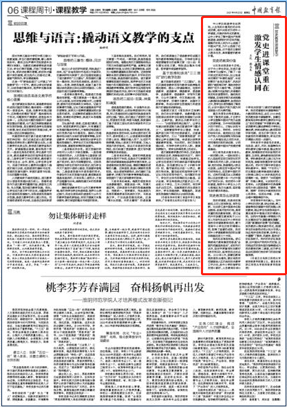 4月23日,《中国教育报》刊发教师教育学院博士生王达与其导师蔡志良教授合作撰写的文章《党史进课堂重在激发学生情感认同》。
