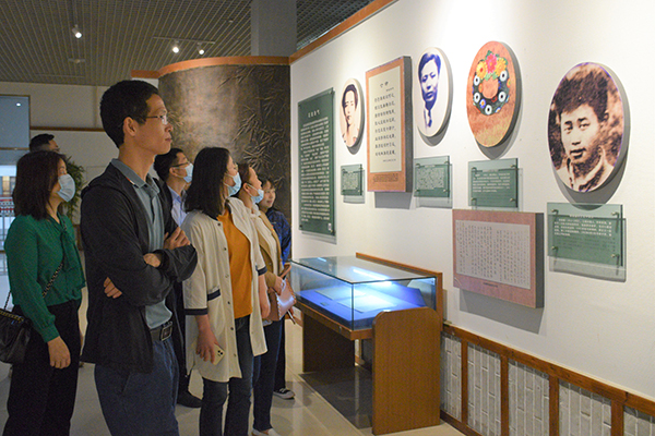 纪念馆还原了被囚的叶挺将军的囚室,“富贵不能淫,威武不能屈,正气压邪气,坐牢三个月,胜读十年书”这是他在李村监狱监房墙壁上写下的。身陷囹圄何足惧,慷慨高歌赴刑场,革命志士们高歌着“肉刑折磨何所惧,数日还原又斗争”“浩气永长存,丹心昭万古。生前未了事,留与后人补”……他们崇高的爱国主义精神、百折不挠的革命意志和坚定不移的共产主义信念令党员骨干一行印象深刻。
