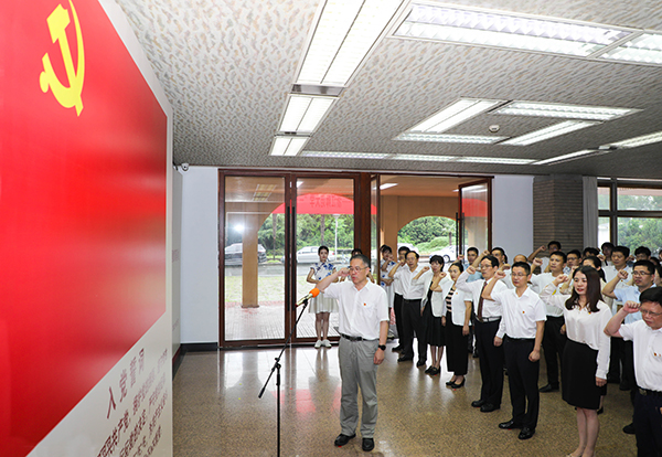 “我志愿加入中国共产党,拥护党的纲领……”在蒋国俊的领誓下,现场党员一同宣誓,重温入党誓词。