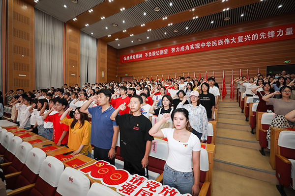 数学与计算机科学学院2018级计算机科学与技术专业韩江伟同学带领全体暑期社会实践队员宣誓。全体实践队员庄严承诺:弘扬光荣传统,赓续红色血脉;践行志愿精神,传播先进文化;服从安排,严守纪律,尽己所能,服务社会;不负时代,不负韶华,不负期望,请党放心,强国有我!