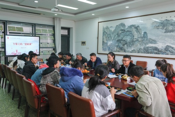 据了解,浙江师范大学人文学院将每月的第一周定为党委活动的调研、听课、谈心谈话周,并推出“午餐上的思政课”品牌活动,利用午餐的时间,各班子成员下到教学、科研、学生成长的第一线,与青年教师、学生骨干及特殊学生交流谈心,了解师生的情况和需求,助力和谐校园的建设。