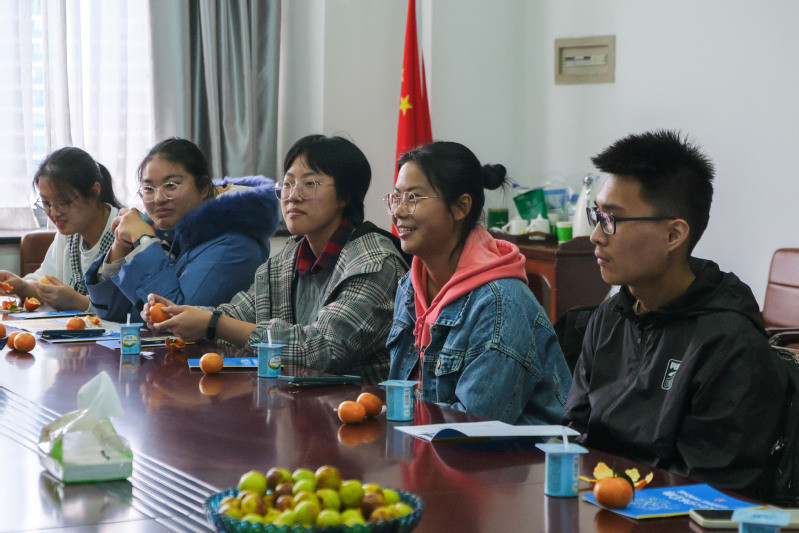 每月的第一周,浙江师范大学人文学院班子成员及老师、学生干部和学生代表都会聚在这张桌前。提问声、解答声、欢笑声让这间小小的会议室显得格外温暖。