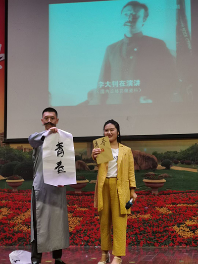 林舒心组的参赛诗文是《秋瑾》,采用部分对话的方式大声说出以秋瑾为代表的女性在新时代的呐喊,双人舞蹈的完美融入,将现场观众带入那个以身许党、抛头颅、洒热血的革命年代。尽管排练时间不足、磨合次数不多、表演人员还带着伤病,但呈现给观众的是优美的舞蹈和抑扬顿挫的朗诵间的完美结合。