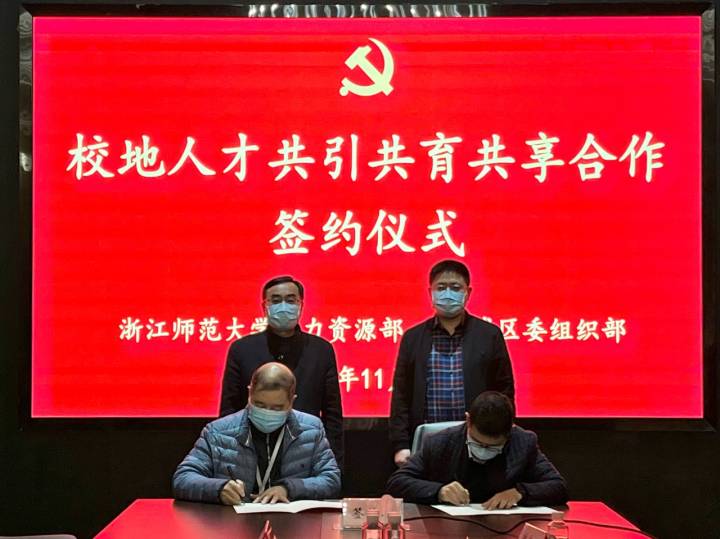 随后,校地双方签订《构建校地人才共引共育共享新机制》协议。未来,双方将聚焦婺城区新旧动能转换、乡村振兴、共同富裕等重大战略发展,围绕浙师大一流学科、一流大学建设的发展规划,综合学校产学研发展需要和地方企业技术研发需求,联合开展高层次人才引进、培育、使用等工作,逐步探索形成一套具有婺城特色的校地高层次人才融合发展的经验模式,实现区域党建与高校党建同频共振。