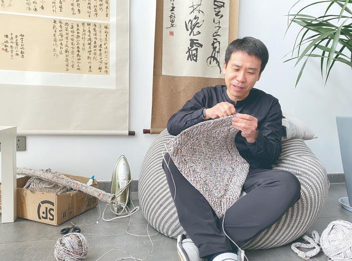 那么,报纸、书页甚至卫生纸,又是怎么变成“毛线”且织成艺术品的呢?