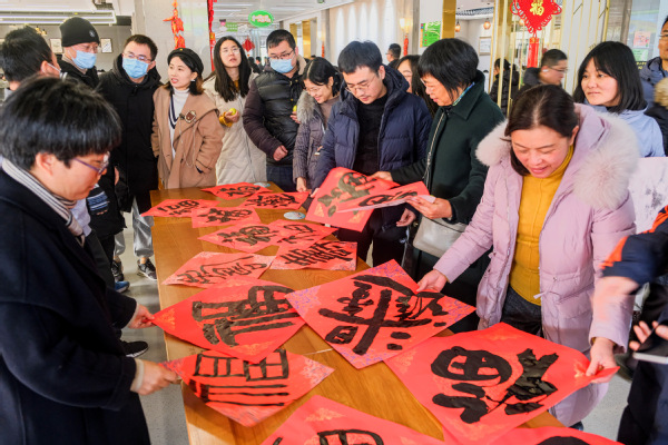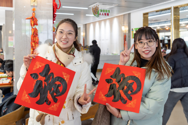 “这个活动太喜庆啦,一下子让人感觉到了新年的味道,我要把福字带回家。”教师教育学院的辅导员蒋栩璐精心挑选了两幅作品,一份准备放在刚装修好的新居,一份准备放在办公室,她希望这份“福”气能传达给身边更多的人。