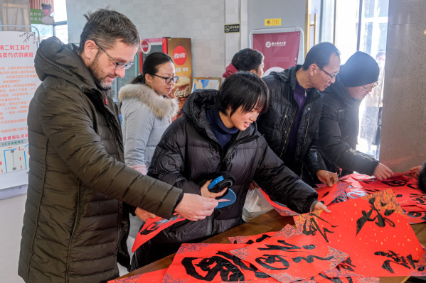 一个个福字饱含深深祝愿,一幅幅吉祥虎寓意满满活力,承载着人们对美好生活的向往和祝福。在享用完午餐的间隙,老师们自觉有序排队,领取自己中意的“福”。大家一边欣赏着书法创作,一边互相品评着各式各样的“生肖福”,脸上洋溢着喜悦的笑容,现场传出阵阵笑声,浓浓的年味儿顿时扑面而来。