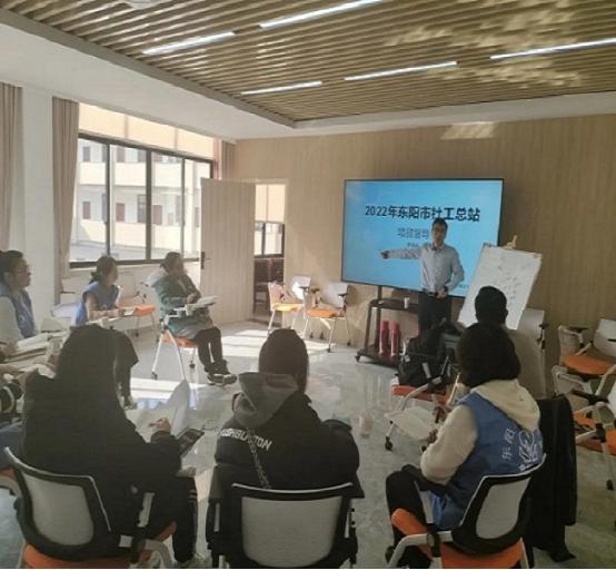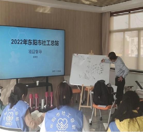 近年来,东阳市爱盟社会工作服务中心作为浙江师范大学社会工作硕士研究生实践基地与浙江师范大学密切联系,李老师此行便专程前来为东阳市社工总站做督导,同时也对东阳市社工总站今后在社会工作领域内的发展提出新的建议,东阳市爱盟社会工作服务中心也参与其中。