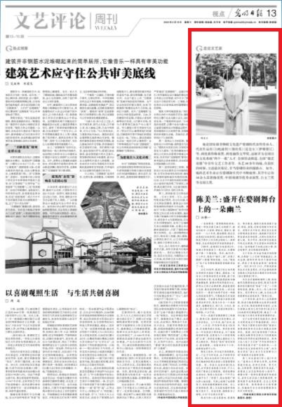 清人吴永嘉在《明心鉴》中有云:“盖闻古之学者必有师,此非特传道为然也,而学艺亦然。学艺之始,必贵择师,师善则弟子受其益。”在陈美兰这位良师的悉心指导下,杨霞云等一批青年婺剧演员迅速成长,其中已有20余人荣获梅花奖、中国戏剧节优秀表演奖、白玉兰奖等全国大奖。虽然陈美兰已退居幕后,但她的艺术生命却在婺剧新生代中不断延伸。