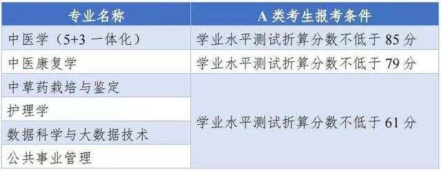 (五)按上述基本条件,A类考生报考各专业的要求为: