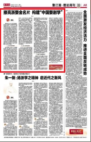 作为领军婺剧团,“浙婺样板”的成功经验为婺剧舞台艺术的发展营造了绝好的外部环境,打下了坚实的基础。作为首批“浙江文化印记”入选项目,如何在“大婺剧”戏曲生态圈和所有剧团共生共赢的良睦竞争格局中,推动剧种和剧团健康和可持续发展,当务之急就是要建构“中国婺剧学”理论话语体系。所谓“婺剧学”,就是以婺剧为核心进行内涵与外延研究的学问,是依托于“浙学”“婺学”“宋韵”的体系建构。“婺剧学”包含对“浙婺样板”成功经验的可行性复制推广,婺剧发展生态圈追求的剧种繁荣,继而在此基础上挖掘婺剧的民俗文化、文学底蕴、审美倾向、发展规律、艺术批评、接受心理、剧团经济、历史考证、剧目创作、文化现象、体系制度、地理环境、图绘影像、方言土语等多方面的内涵与外延,形成融合文艺学、历史学、民俗学、人类学、语言学、社会学、表演艺术学等为一体的跨学科建构。