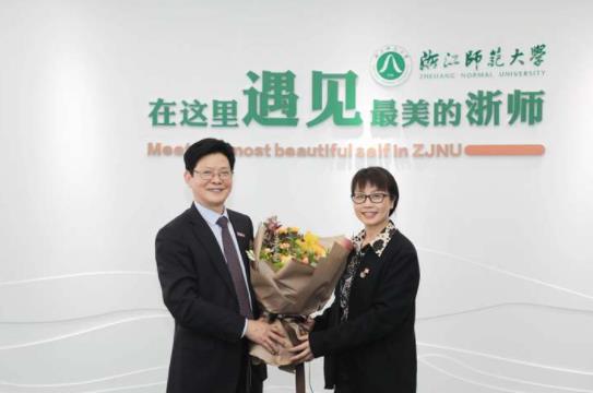 ▲浙师大张根福副校长(中),浙师大校友会秘书长周红霞(右)