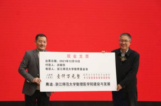 ▲洪钢华先生为浙江师范大学数理医学院建设捐赠一仟万元