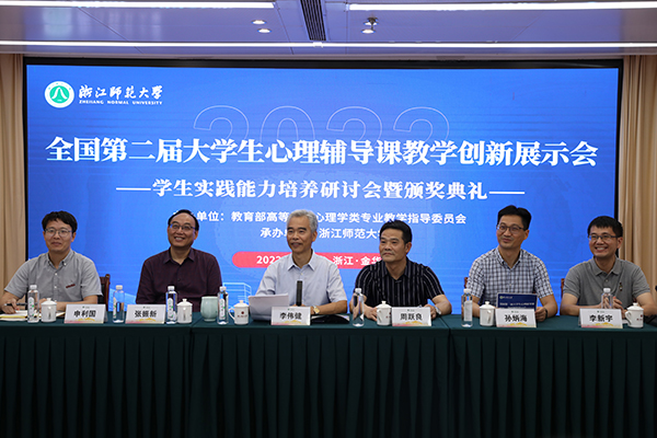 6月6日,全国第二届大学生心理辅导课教学创新展示会——学生实践能力培养研讨会暨颁奖典礼在浙江师范大学举行,教育部高等学校心理学类专业教学指导委员会主任委员周晓林,副主任委员陈红,秘书长苏彦捷,委员姚本先、汪艳丽,浙江师范大学副校长李伟健出席颁奖典礼。6000余人在线观看了活动直播。