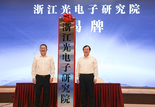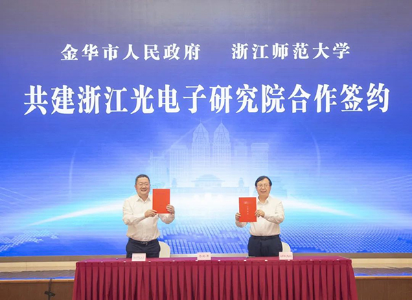 邢志宏与郑孟状代表双方在现场签订《金华市人民政府浙江师范大学共建浙江光电子研究院合作协议》,并共同为浙江光电子研究院揭牌。