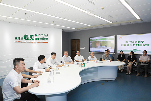 6月16日,浙江师范大学融媒体平台启用仪式在行政北楼327室举行。浙江日报报业集团党委委员、副社长程为民,浙江日报报业集团编委、浙江共产党员杂志集团、红旗出版社社长褚定华,浙师大党委副书记朱坚等出席启用仪式,浙师大党委委员、宣传部、教师工作部部长朱毅峰主持活动。
