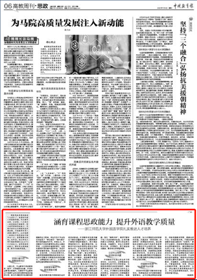 7月4日,《中国教育报》发表赵婉清老师文章《涵育课程思政能力 提升外语教学质量——浙江师范大学外国语学院扎实推进人才培养》。