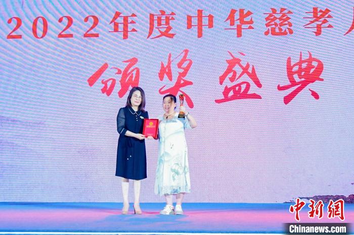 “为百位烈士画像”公益项目被评为2022年度中华慈孝人物/团体,发起人叶庆华代表该公益项目领奖 王刚 摄