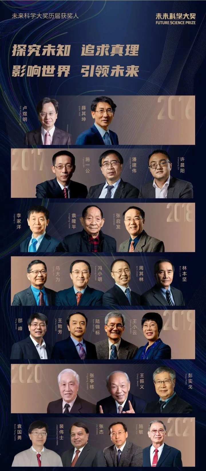 这一奖项设立于2016年,由科学家和企业家群体共同发起。未来科学大奖关注原创性的基础科学研究,奖励在中国内地(大陆)、香港、澳门、台湾做出杰出科技成果的科学家(不限国籍)。奖项以定向邀约方式提名,并由优秀科学家组成科学委员会专业评审,秉持公正、公平、公信的原则,保持评奖的独立性。
