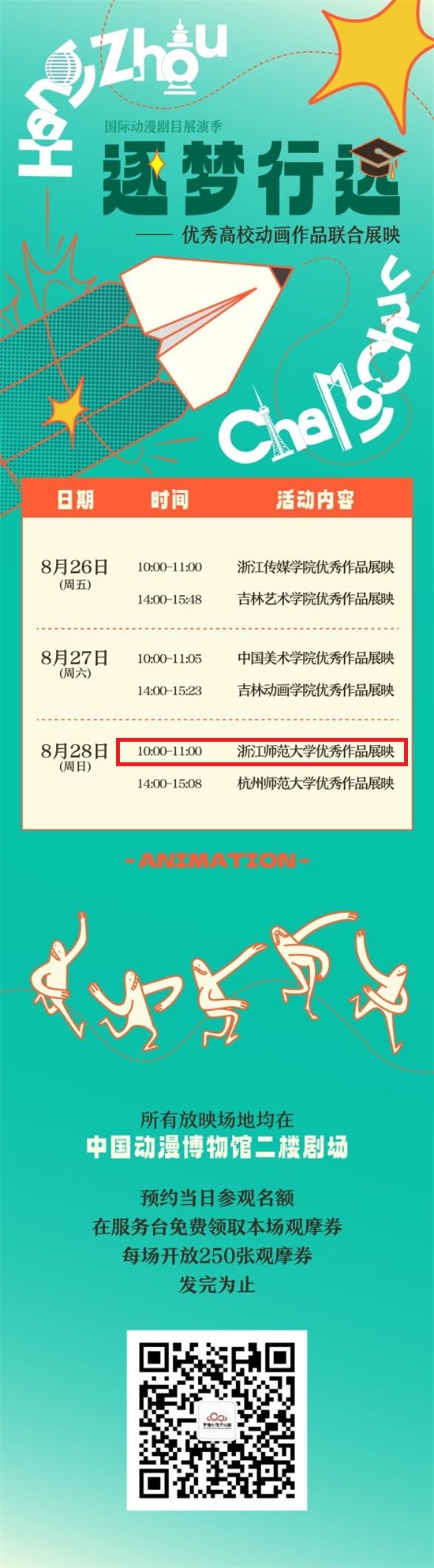 8月26日—28日,由中国动漫博物馆主办、杭州市电影电视家协会承办的“逐梦行远——优秀高校动画作品联合展映”在杭州举行。