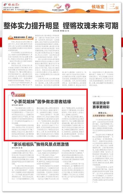 据了解,省运会恢复比赛后,许多原本已经录取的省运志愿者陆续开学,于是兰溪赛区面临志愿者短缺问题。最终,浙江师范大学行知学院增加了志愿者人数,“小茶花”们在经过层层选拔、培训、演练,并相继完成赛会知识、通用礼仪、疫情防控、急救技能、体能训练、测试赛实战演练等一系列专业培训后,走上了省运会赛场。