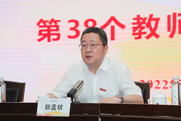 郑孟状代表学校向受表彰的各位老师表示祝贺,向为学校改革、建设和发展作出重要贡献的离退休老同志和从教30周年的教职工致以崇高的敬意,向全校教职员工致以节日的问候。郑孟状指出,过去一年,全校师生以习近平新时代中国特色社会主义思想为指导,全面落实党的十九大和十九届历次全会精神、省第十五次党代会精神,不断健全保障拥护“两个确立”、笃行“两个维护”的制度机制,“十四五”发展规划扎实落地,“争A创一流”各项工作有序推进、成绩鼓舞人心。在全校师生的努力下,学校在重点领域不断攻坚突破,立德树人成效进一步凸显,引育用并举做好人才工作,国际交流立体式拓展,科研和社会服务水平不断提升,整体智治体系更加完备,将平安幸福美丽浙师建设引向深入。