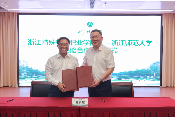 9月14日,浙江师范大学与浙江特殊教育职业学院战略合作签约仪式举行,浙江师范大学党委书记郑孟状,浙江特殊教育职业学院党委书记王正东、院长黄宏伟出席签约仪式,仪式由浙师大副校长林一钢主持。