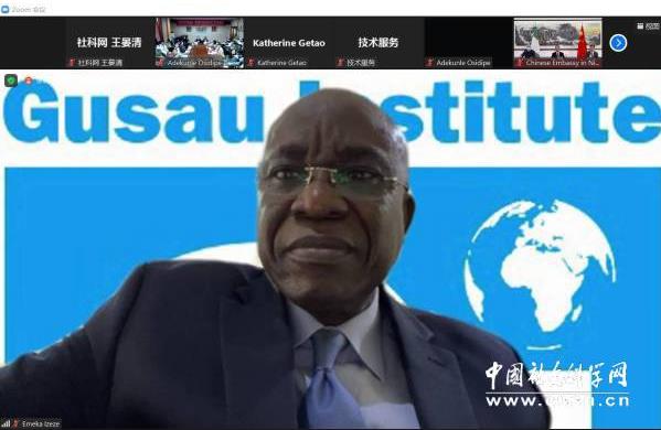 尼日利亚《卫报》有限公司前总经理与总主编埃迈克·埃泽泽主持会议 (本网记者王晏清/摄)