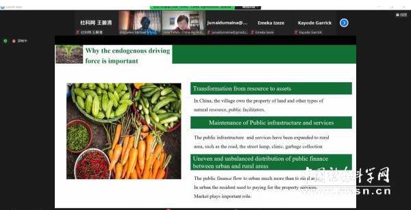中国农业大学国际发展与全球农业学院副院长唐丽霞教授基于其在云南参与乡村振兴的亲身工作经历,向非洲学者分享了中国地方政府和乡村干部在振兴农村发展方面的经验。她表示,培育乡村内驱性发展能力是中国乡村脱贫致富的制胜法宝。在具体的实践中,中国地方政府因地制宜,通过引入专业公司,盘活当地乡村自然、文化资源,推行农村土地资源创新改革试点,探索农村土地资源向农民资产转化等创新型工作,帮助农民增收致富。她认为,中国地方政府探索的乡村脱贫经验值得非洲国家参考借鉴,希望通过地方政府交流合作,促进经验共享。