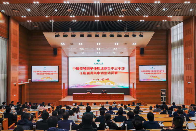 10月30日,浙江师范大学在行政中心报告厅召开中层领导班子任期述职暨中层干部任期届满集中调整动员会。浙师大党委书记郑孟状出席会议并讲话,校长蒋云良主持会议。