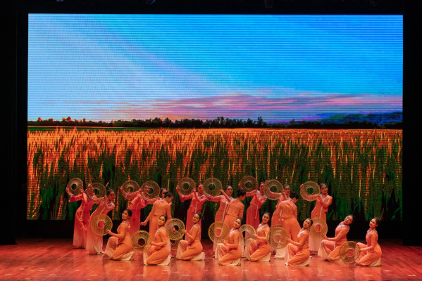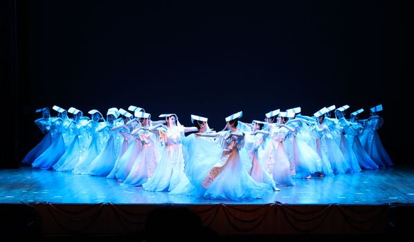 一袭白衣,在蓝光的烘托下更加空灵。行知学院的姑娘们踏着轻盈且坚定的步伐走来,仿佛身处云雾之中,缓缓展开如一幅水墨画。而后,由人文学院带来舞蹈的《醉春风》又将观众们带到了生机盎然的江南小镇。