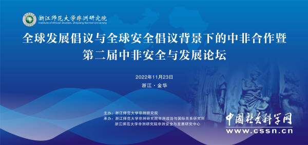 中国社会科学网讯(记者 王晏清)11月23日,“全球发展倡议与全球安全倡议背景下的中非合作暨第二届中非安全与发展论坛”在浙江师范大学通过线上线下相结合方式进行。论坛由浙江师范大学非洲研究院主办,浙江师范大学非洲研究院非洲政治与国际关系研究所、浙江师范大学非洲研究院非洲安全与发展研究中心承办。来自清华大学、中国人民大学、外交学院、北京外国语大学、中国国际问题研究院、中国现代国际关系研究院、中国社会科学院、兰州大学、浙江师范大学等高校及研究机构的学者、智库专家、期刊编辑以及来自中地海外集团有限公司等企业的相关人士围绕新时代中非安全合作与发展面临的新机遇、新问题、新挑战分享真知灼见,提出新思想、新路径。