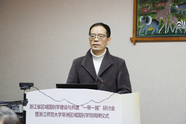 12月7日,浙江省区域国别学建设与共建“一带一路”研讨会暨浙江师范大学非洲区域国别学院揭牌仪式举行。会议由浙江省社会科学界联合会指导,省区域国别与国际传播研究智库联盟、浙江师范大学主办,浙江师范大学非洲研究院承办。浙江省社科联领导、国内相关专家、浙江省区域国别与国际传播智库联盟成员单位代表,以及来自摩洛哥、马里、喀麦隆、哈萨克斯坦、俄罗斯等“一带一路”沿线国家的学者、智库人士、媒体代表等150余人分别以线上线下的方式出席会议。