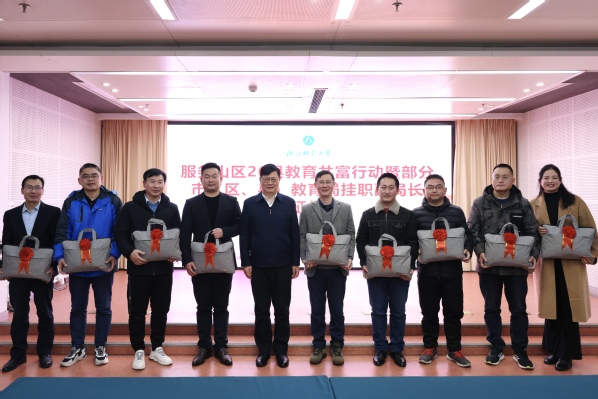 蒋云良表示,为进一步推动十大行动计划的落地落实,学校采取了“订单式选派”模式,在全校选拔一批优秀的年轻博士,赴相关市(县、区)开展挂职锻炼。浙师大作为全省首批重点建设高校,始终牢记立德树人根本使命,将浙师的教育服务辐射到全国各地,不断扩大共同富裕的服务面向,努力办好人民满意的教育,扎实服务浙江共同富裕示范区建设。服务山区26县教育共富,这是学校的责任所在、使命所在。蒋云良对希望即将挂职的干部厚植师德情怀,钟情山区教育发展;充分发挥教师教育优势,助力山区教育发展;希望各单位搭建完善共富建设平台,推动山区持续发展。